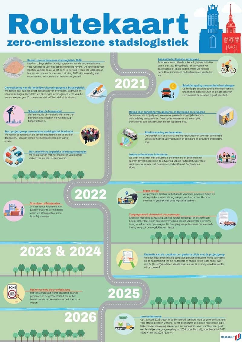 We zijn daarom voornemens een zogenoemde zero emissie (ZE) zone voor stadslogistiek in te voeren in het centrum van Dordrecht. We verminderen hiermee ook onze uitstoot van broeikasgassen zoals CO2. Deze ambitie wordt onder meer bekrachtigd in de ‘energietransitie Drechtsteden’, het mobiliteitsbeleid en het coalitieakkoord. Zero emissie privévoertuigen vallen hier dus niet onder. De geografische focus ligt op de binnenstad, omdat dat een concentratie van stadslogistiek bevat, en een gemakkelijk definieerbaar gebied is. De volgende stap is een aanpak voor de andere wijken.