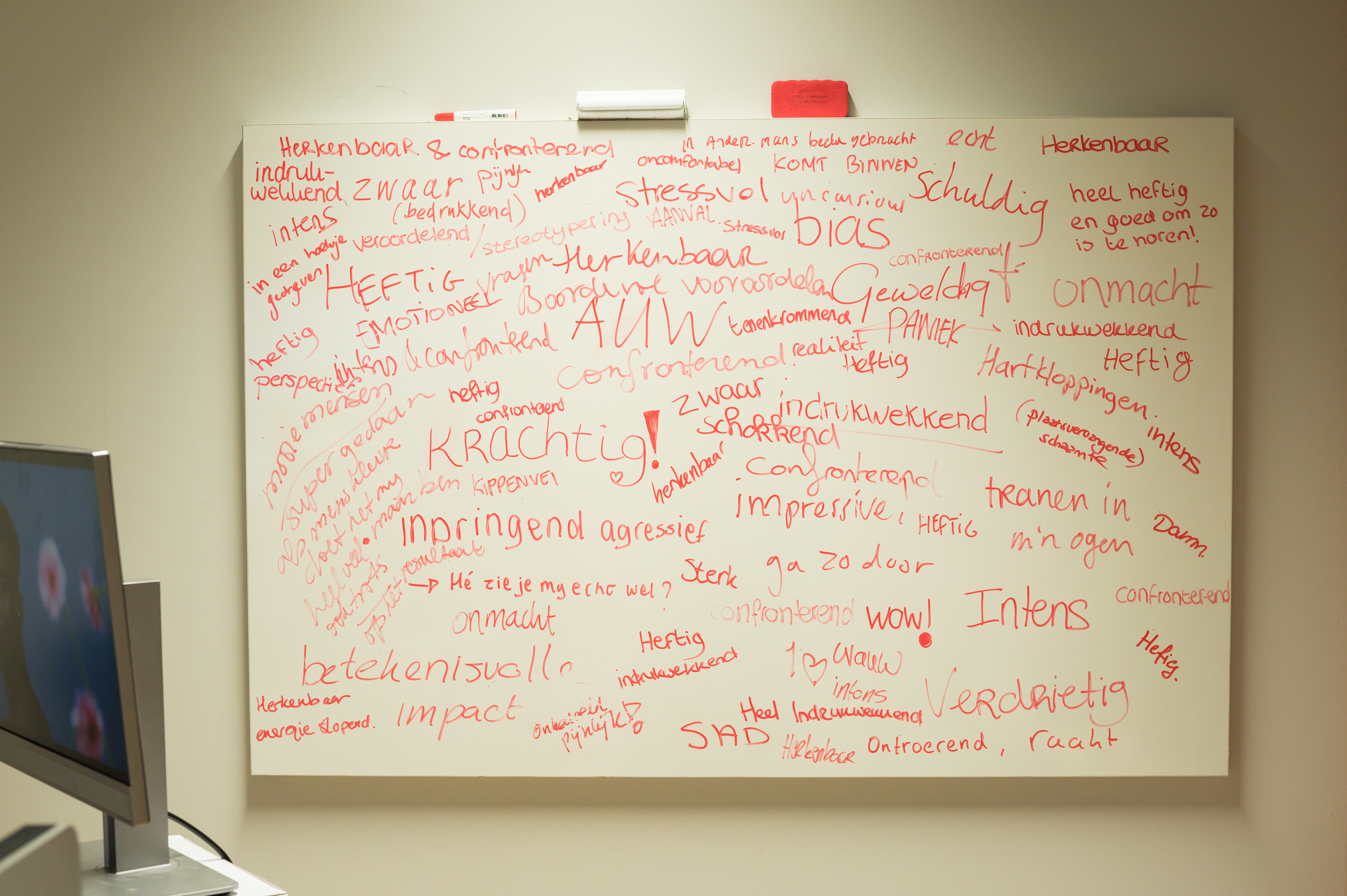 Op het bord schrijven bezoekers hun reactie. Je leest veel dat het voor mensen herkenbaar is, dit schrijven vooral docenten en studenten van kleur. Het is daarom ook belangrijk voor mij dat deze mensen gezien worden en dat andere mensen gaan begrijpen wat microagressie is en wat het met je kan doen."