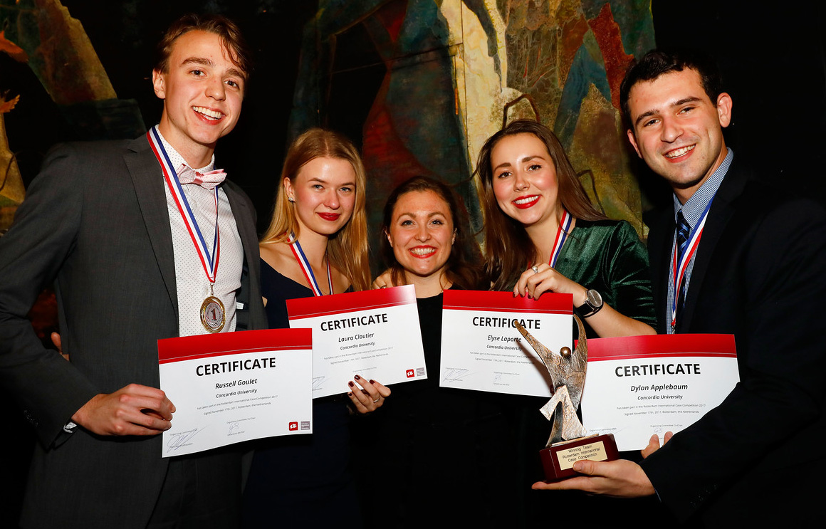 Om 22.00 uur is het eindelijk de beurt aan Angelien en juryvoorzitter Jan Oostdijk om het verlossende woord te spreken. De vierde plaats is voor de Canadezen van Bishop’s University, de bronzen plak gaat naar het Thaise team Thammasat voor hun ‘perfecte samenwerking en presentatie’. Daarbij mag vermeld worden dat het zeer moeilijk was om te kiezen wie 2, 3 en 4 moesten worden. Ook bleek de strijd om plaats 1 en 2 niet bij voorbaat beslist. ”Beide teams vertegenwoordigden iedere stakeholder uitstekend.” Er kon er echter maar één winnen en dat was Concordia University uit Montreal, die de prijs uit handen van Angelien en Leen Wendels overhandigd kreeg.