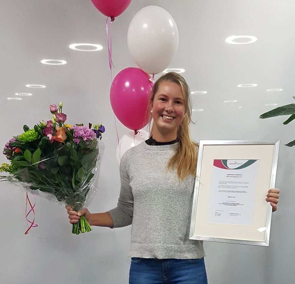Er zijn in totaal 14 afstudeerprojecten door de vier hogescholen waar je ergotherapie kunt studeren en private opleiders zoals NCOI en Pro-Education ingestuurd. Alle inzendingen zijn beoordeeld door een gepromoveerd ergotherapeut, een praktiserend ergotherapeut en een beleidsmedewerker van Ergotherapie Nederland. In de top 3 viel nog een alumnus van de opleiding Ergotherapie van de hogeschool in de prijzen. Suzanne van der Vorm werd derde met haar afstudeerscriptie over ‘Het belang van behoud van activiteiten, gewoonten en voorkeuren van ouderen met Dementie’.