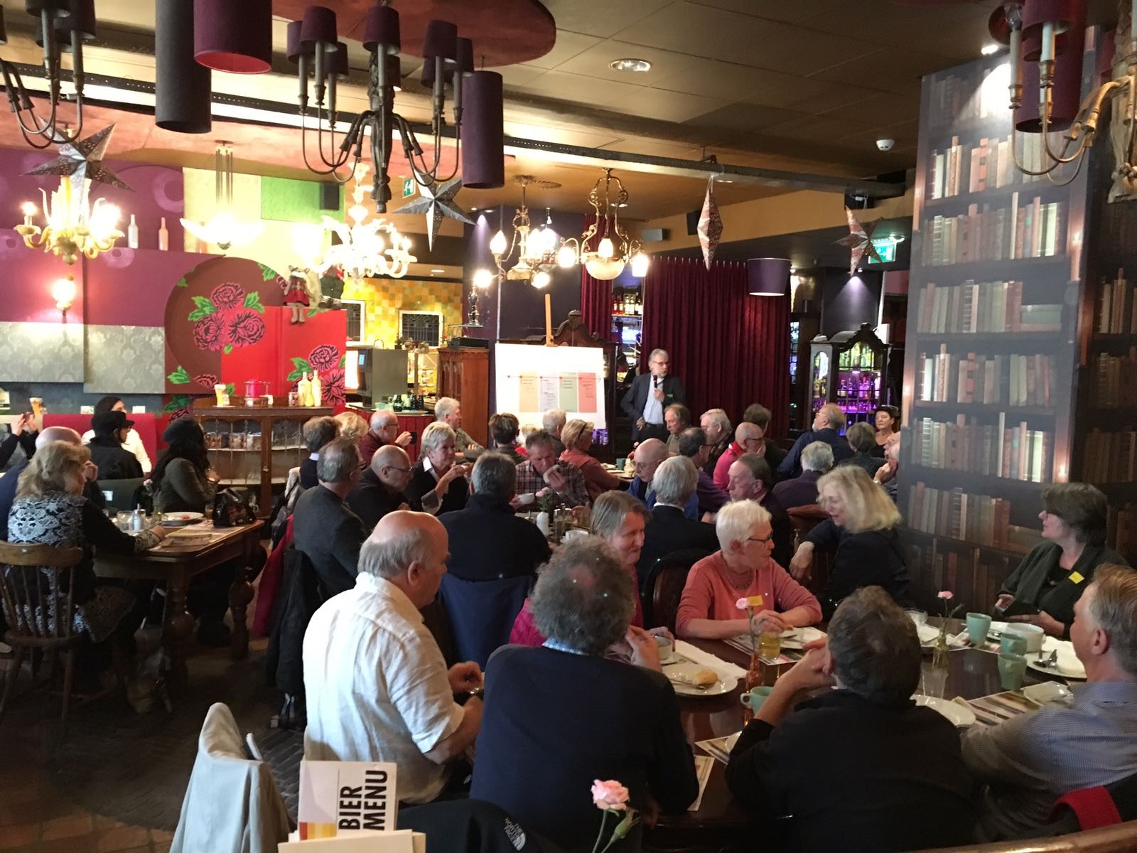 De griepgolf had ook ‘het zilveren gilde’ in de greep gezien het aantal afzeggingen, maar uiteindelijk lopen er door de spontane opkomst meer oud-medewerkers rond dan aanvankelijk opgegeven. Een succes.