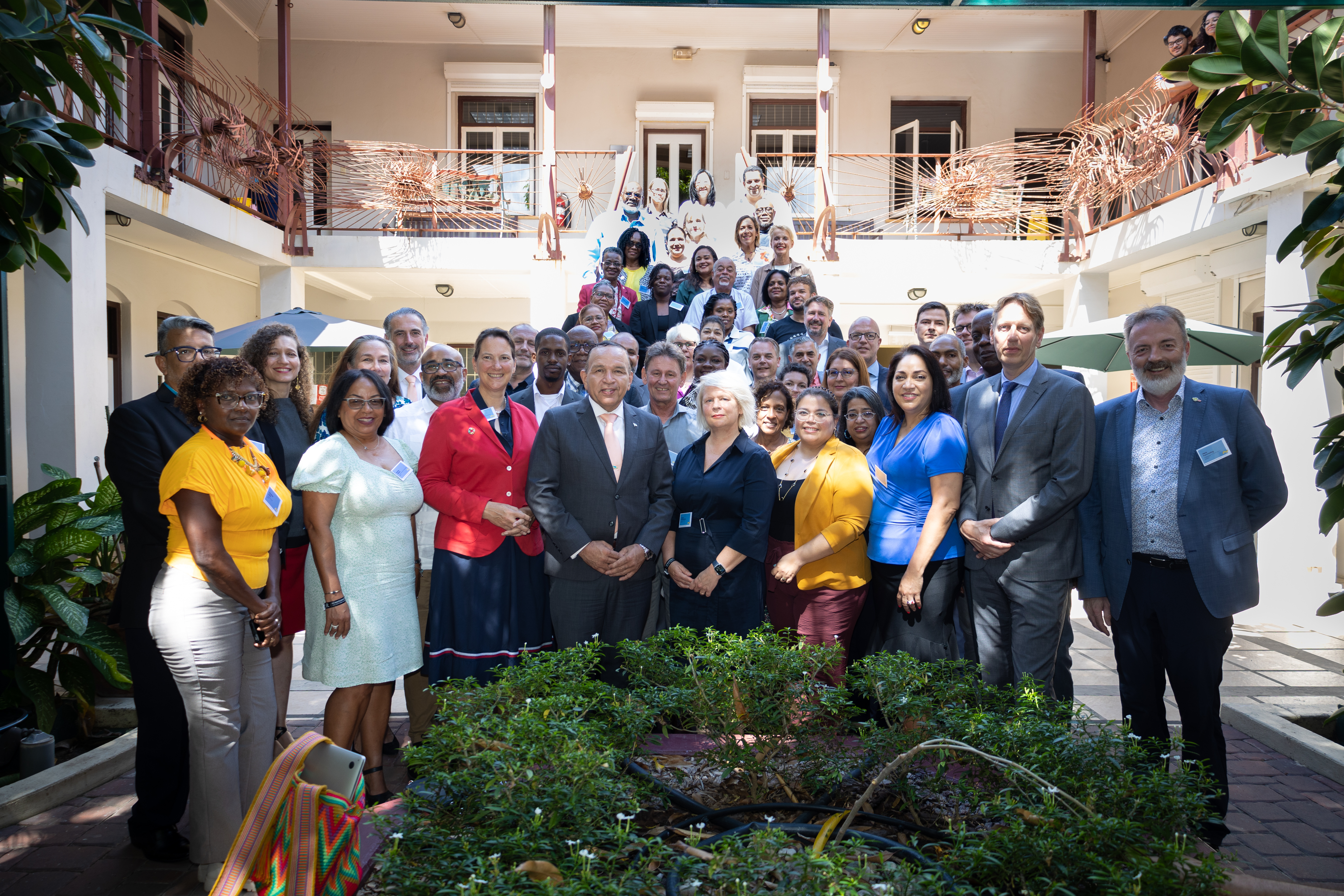 We ontmoeten elkaar in de weelderige binnentuin van de Universiteit van Aruba; delegaties uit Aruba, Bonaire, Curaçao, Saba, Sint Eustatius, Sint Maarten en Nederland. Aanwezig zijn vertegenwoordigers van de overheden, op hoog ambtelijk niveau en mensen die verantwoordelijkheid dragen in het hoger onderwijs op de eilanden en in Nederland. Aan de warme manier van veel begroeten is af te lezen dat mensen elkaar vaker zien. Maar er zijn ook mensen die elkaar voor het eerst zien, letterlijk of in de zin van dat ze elkaar wel van het scherm kennen, maar nog nooit in levende lijve met elkaar gesproken hebben. Viola Heutger, de rector van de universiteit heet ons welkom en legt de lat meteen hoog: de komende drie dagen moeten we een zodanig pakket aan maatregelen hebben dat we jonge mensen van de eilanden een beter perspectief weten te bieden, hetzij in Nederland, hetzij in Amerika, hetzij in het Caribisch gebied zelf.