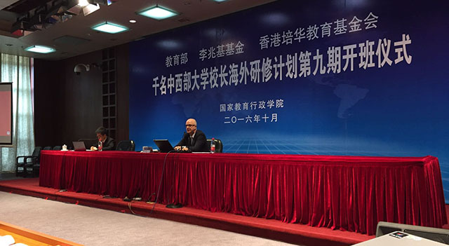 Tijdens de lezing voor bestuurders van Chinese universiteiten
