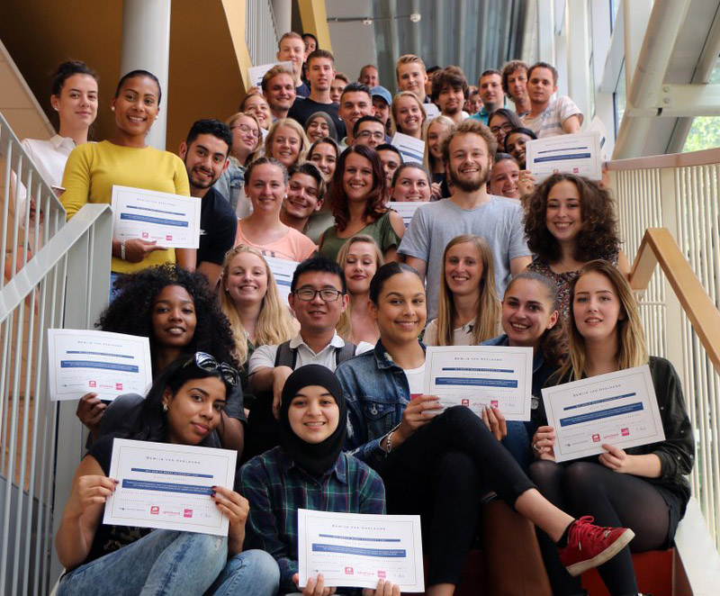 De week waarin op de ene plek het jaar wordt afgesloten en op de andere geopend wordt met zomerweken waarin aanstaande studenten geholpen worden hun Nederlands, wiskunde of Engels bijgespijkerd te krijgen. De week waarin de grote ruimtes in onze gebouwen leeg beginnen te raken, maar waar je ook nog steeds docenten ziet praten met aanstaande studenten om te zien of ze de goede studiekeuze gemaakt hebben. Al onze aanstaande studenten – het zouden er dit jaar wel eens ruim 11.500 kunnen worden – krijgen zo’n gesprek, krijgen de kans hun keuze te spiegelen met een docent.