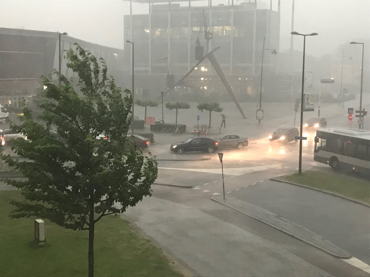 Foto die Ron Bormans op Twitter plaatste van de regenbui net toen hij naar de Arminiuskerk wilde lopen
