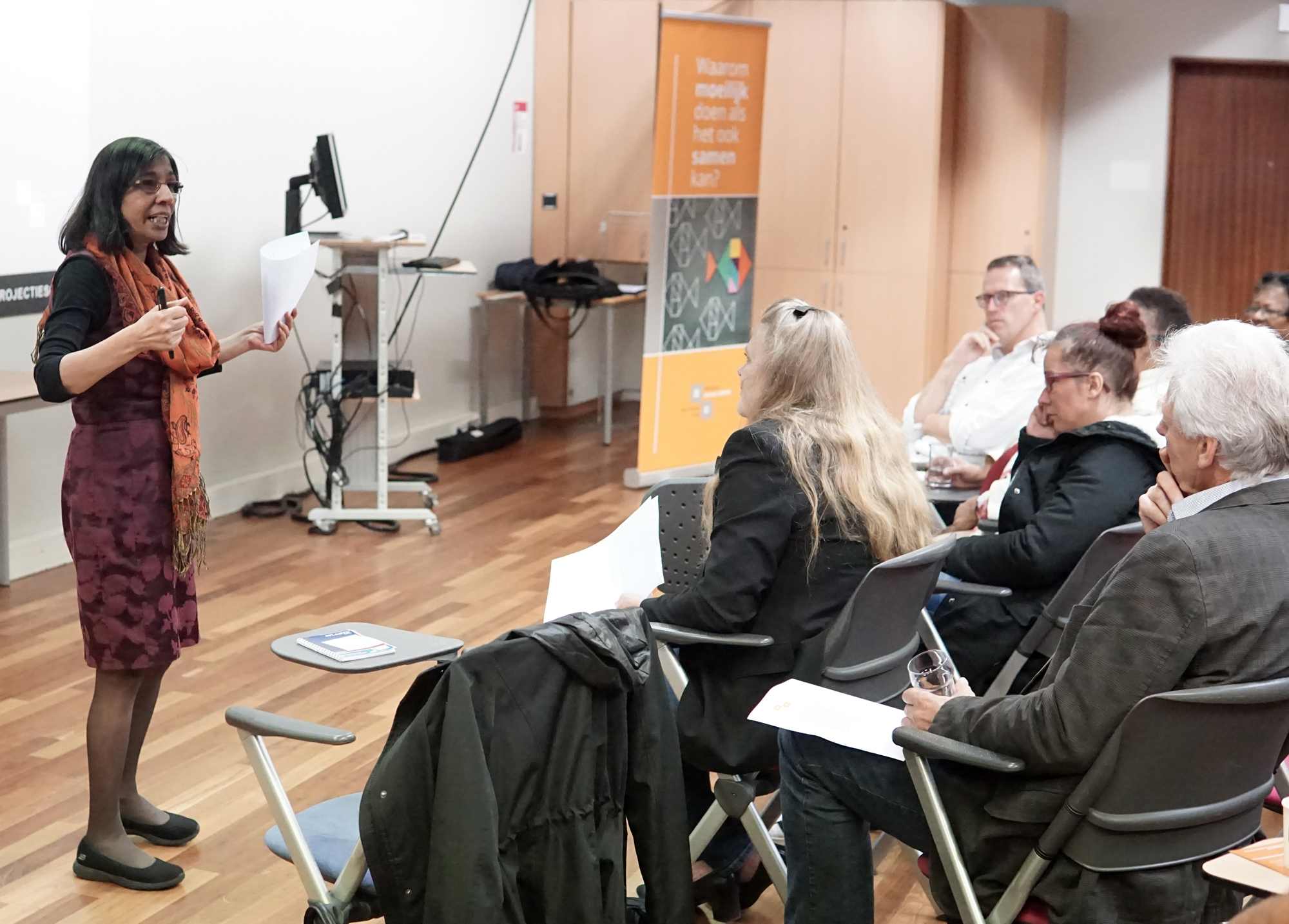 Donderdag 18 oktober organiseerde het Werkteam Informeel-formeel (IF) het eerste kenniscafé van studiejaar 2018 - 2019. Dit werkteam stelt zich tot doel vraagstukken van bewoners te bespreken en – indien mogelijk – op te lossen. Meer over hun werkwijze lees je hier. Op de locatie van Hogeschool Inholland aan de Posthumalaan in Rotterdam kwamen ruim twintig bewoners, beleidsmakers, sociaal ondernemers, (docent)onderzoekers en studenten bij elkaar. Zij gingen actief aan de slag met twee ingewikkelde vraagstukken die om een snelle oplossing vroegen.