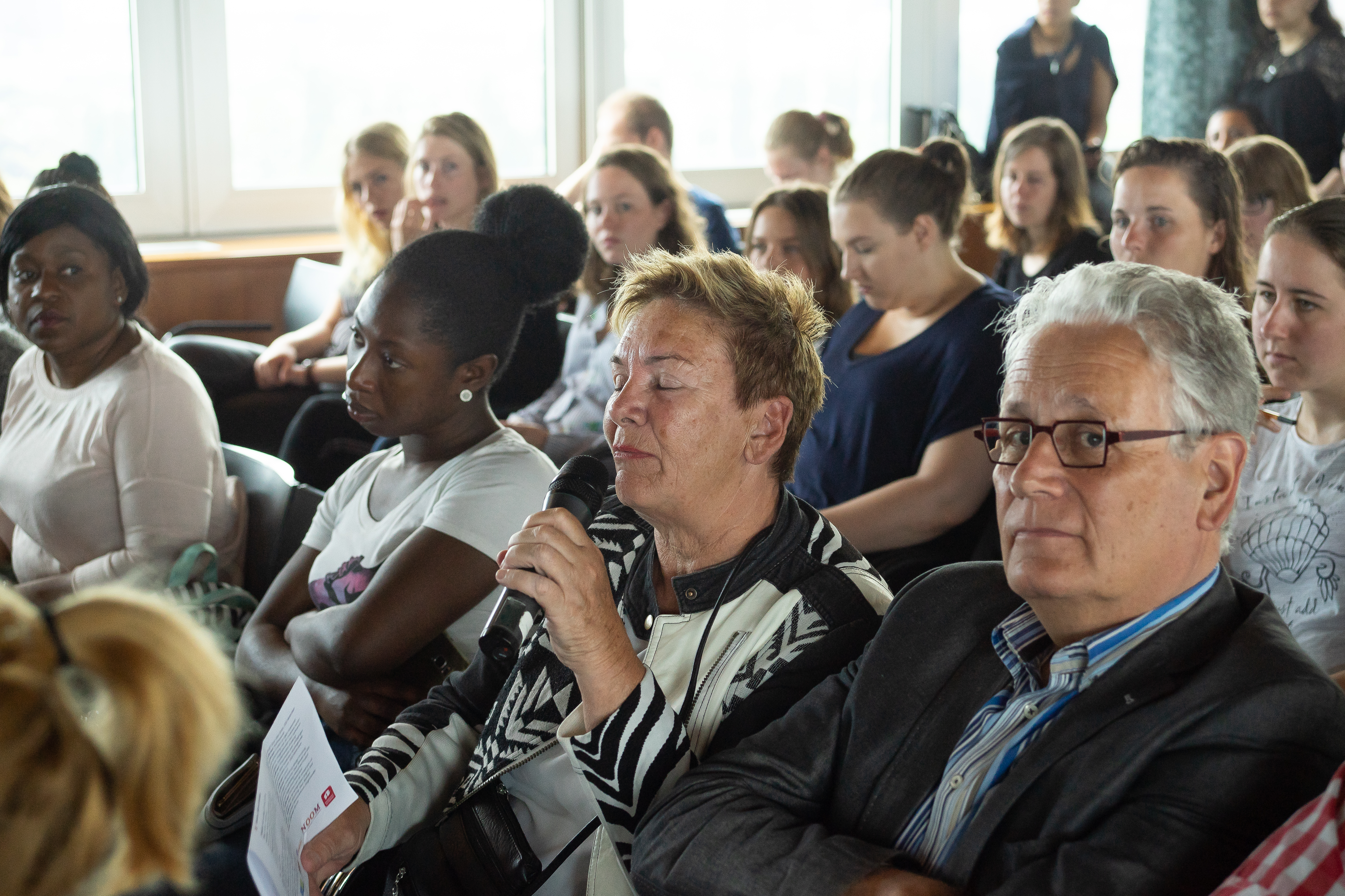 Waar ouderen daadwerkelijk tegenaan lopen schetsten de vitale tachtiger Alex Smits, van OSO Rotterdam en tweedejaarsstudent Verpleegkunde Linde Jelsma. Smits zet zich met de diverse ouderenbonden ook landelijk al jarenlang in om de uitdagingen waar ouderen voor staan op de kaart te krijgen. Hij vindt bijvoorbeeld dat er in de maatschappij te weinig geanticipeerd wordt op wat er gebeurt als je ouder wordt, zowel door het individu als collectief. Smits: “Ouderen veranderen na hun pensioen niet ineens van identiteit: als mens willen zij graag meedoen in de maatschappij. Er is te lang gepraat over ouderen en te weinig met ouderen, want wie kan vragen over wat ouderen belangrijk vinden beter beantwoorden dan de ouderen zelf?” Met de netwerkorganisatie Beter Oud zorgt hij voor de verspreiding van het toetsingskader waaraan hij heeft meegewerkt. Het kader is voortgekomen uit gesprekken met ouderen en laat zien wat de doelgroep belangrijk vindt bij wonen, welzijn en zorg.