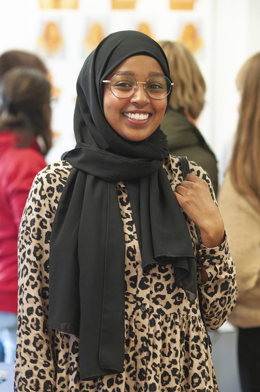 Een paar kamers verderop laat Amira Salah (20) zich voorlichten over de studie Verloskunde. Ze is vanuit Boekel in Brabant naar de open dag gekomen, omdat ze de sfeer wil komen proeven hier op Hogeschool Rotterdam. Dat ze er wat voor over had om er te komen, blijkt uit het feit dat ze een uur lang door de stad heeft gedwaald op zoek naar de hogeschool. Met een grote glimlach vertelt ze dat ze was verdwaald in de stad.