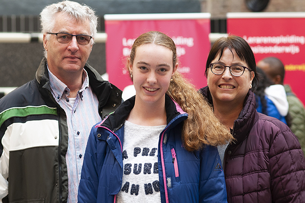 Haar moeder Nicolette van Driel vult haar dochter aan: "Het wordt duidelijk uitgelegd allemaal. Ik ben blij dat we mee zijn, zodat ook wij als ouders weten waar ze straks mee bezig is en waar ze terecht komt.’’ Haar man Jaap van Driel vult aan: "Ja ik vind ze ook heel eerlijk, ze maken het niet mooier dan het is. Het komt warm en open over en het is niet zo grootschalig.’’ De familie woont in Nieuw-Lekkerland en is met het openbaar vervoer naar de open dag gekomen. Jaap: "Zo konden we meteen uitproberen hoe dat bevalt en dat ging heel goed. De metro stopt pal voor de deur, dus dat is heel handig.’’