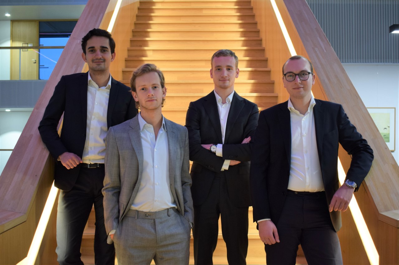 Het team van Hogeschool Rotterdam: Koen Castenmiller (Finance & Control), Bezhan Munavvar (International Business & Management), Maarten Zwinkels (Global Marketing & Sales) en Olivier Vrijenhoek (Bedrijfskunde)