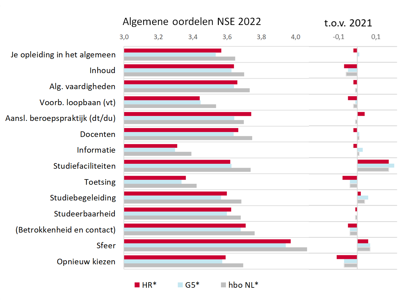 In 2021 werden de studiefaciliteiten beoordeeld met gemiddeld een 3,47 (op een schaal van 1 tot 5), dit jaar ligt dat cijfer een stuk hoger: 3,64. Het cijfer voor de sfeer steeg van 3,93 naar 4,01.