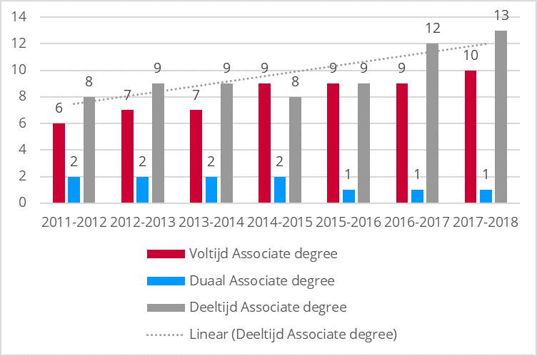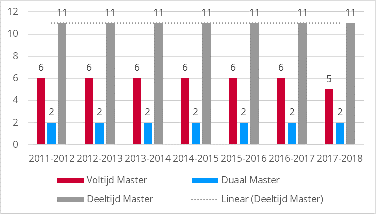 Het aantal deeltijd bacheloropleidingen is in 2017 gedaald naar 32 van 33 in 2016. De instroom van nieuwe studenten bij de deeltijdvariant van de Lerarenopleiding Geschiedenis is stopgezet. Redenen hiervoor waren onder andere een te lage instroom en een slechte arbeidsmarkt.