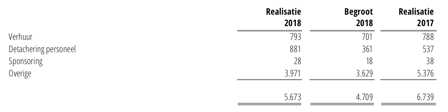 Het totaal aan overige baten is met 1,0 miljoen euro gedaald ten opzichte van 2017. Deze daling bestaat voornamelijk uit een afname van de overige baten van 1,4 miljoen door schattingswijzigingen incassomachtigen (0,4 miljoen euro), opbrengsten kantine (0,2 miljoen euro), verkochte leermiddelen (0,1 miljoen euro) en eenmalige zaken (0,7 miljoen euro).