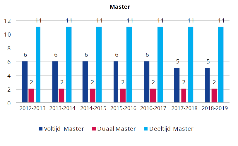 In het aanbod van de masters is in 2018 niets gewijzigd. De nieuwe master River Delta Development, een ‘joint degree’ van Hogeschool Rotterdam, HZ en Van Hall Larenstein, zou oorspronkelijk in 2018 van start gaan, maar dit is uitgesteld naar 1 september 2019. Deze opleiding is daarom nog niet in het overzicht opgenomen.