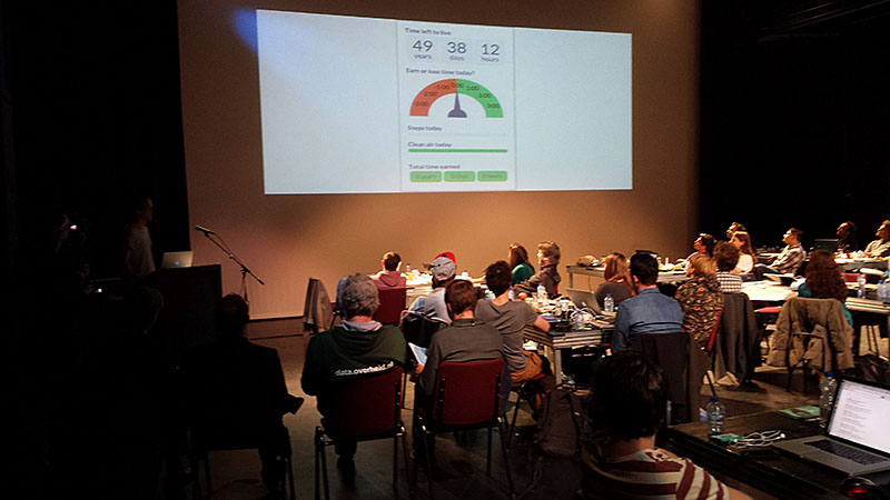 De deelnemers verdeelden zich in 7 teams. Na korte introducties door Pepijn Lemmens (Het Nieuwe Instituut), Henk Wolfert (DCMR) en Anton Ruiter (gemeente Rotterdam) over de beschikbare datasets op respectievelijk architectuur, luchtkwaliteit en verkeer in Rotterdam, gingen de teams om 10 uur van start. Voor het middaguur hadden alle teams een concept dat ze tot 7 uur ‘s avonds doorontwikkelden tot een presenteerbaar prototype. In pitches van drie minuten presenteerden de teams hun concepten en prototypes aan een jury bestaande uit Rob van Kranenburg (IoT-expert, auteur, en adviseur voor de EU), Paul Suijkerbuijk (Open Data ambassadeur werkzaam bij Ministerie van Binnenlandse Zaken), Wilfried van Aubel (expert gebiedsstransities en stedelijke ontwikkeling) en juryvoorzitter Inge Janse (auteur, debatleider, Vers Beton).