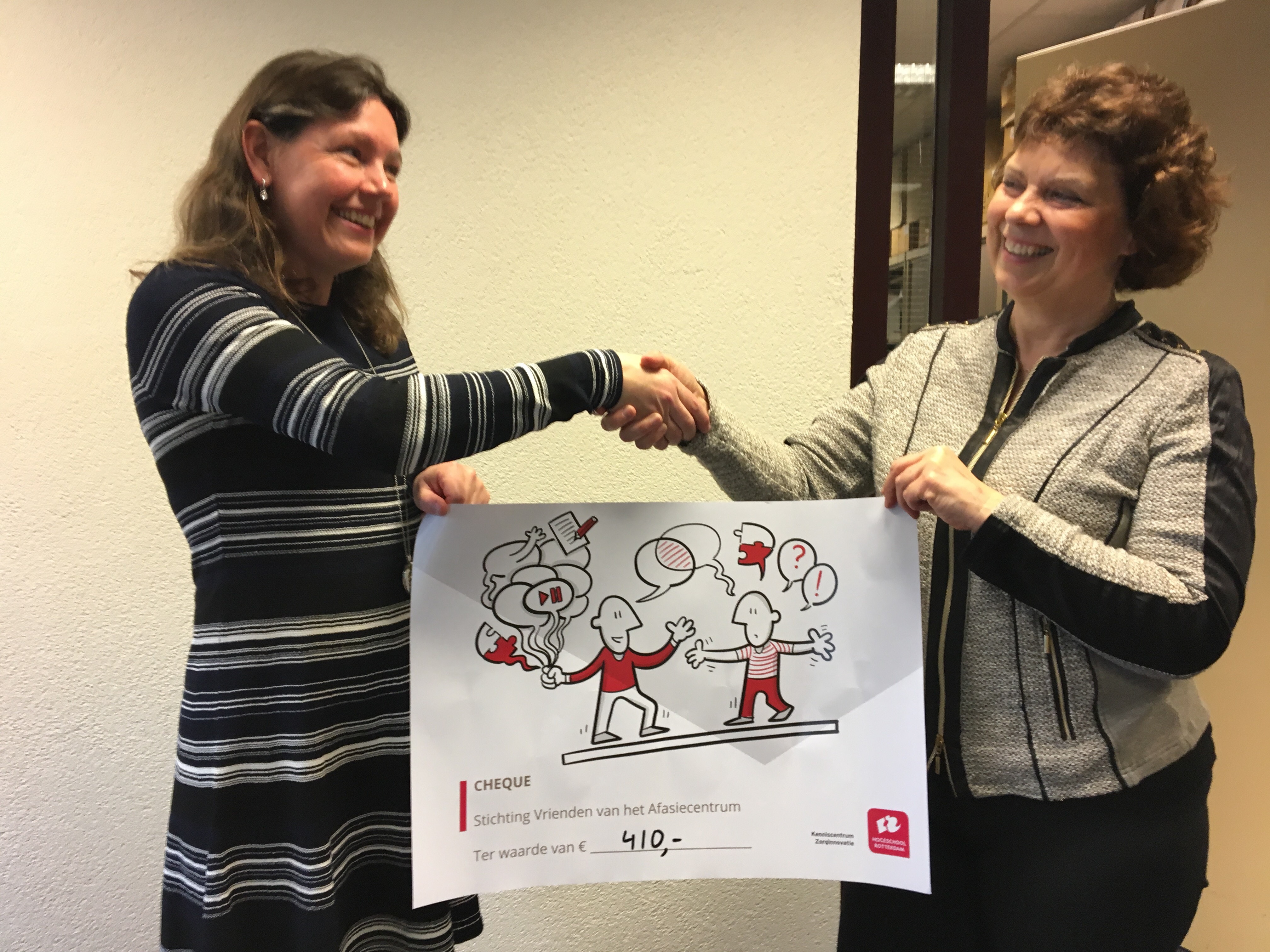 In plaats van het aannemen van een cadeau heeft Karin Neijenhuis gekozen voor een donatie aan de Stichting Vrienden van het Afasiecentrum. De stichting zet zich in om het welzijn van mensen met een Niet Aangeboren Hersenletsel (NAH) en haar mantelzorgers te bevorderen. De stichting ondersteunt welzijnsactiviteiten en dit geld wordt besteed aan een actitiviteit gekoppeld aan het twintigjarig jubileum van de stichting.