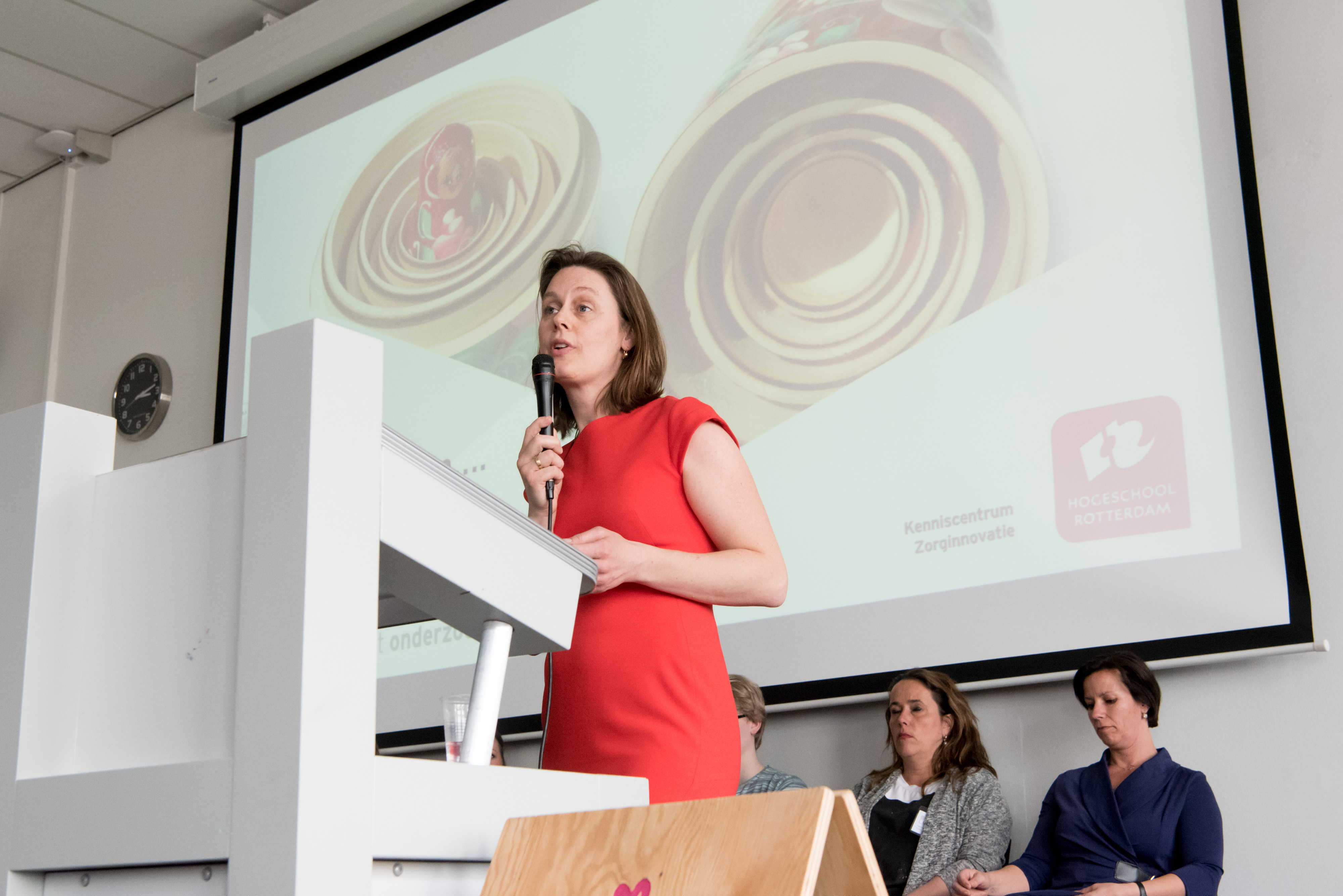 Na een warm welkom door Marleen Goumans, programmadirecteur van Kenniscentrum Zorginnovatie, startte Hanneke met haar openbare les. Hanneke gaf de bezoekers inzicht in de meerwaarde van haar lectoraat. De cijfers rond complicaties tijdens zwangerschap en geboorte en perinatale sterfte zijn bijvoorbeeld nog steeds relatief hoog vergeleken met andere Europese landen. Ook binnen Rotterdam blijken de verschillen groot. In bepaalde achterstandswijken is de kans op perinatale sterfte en andere complicaties vele malen hoger dan in andere wijken van de stad. De afgelopen jaren was er een lichte daling te zien in de perinatale sterfte in Nederland, maar in 2014 en 2015 lijkt de daling te stagneren.