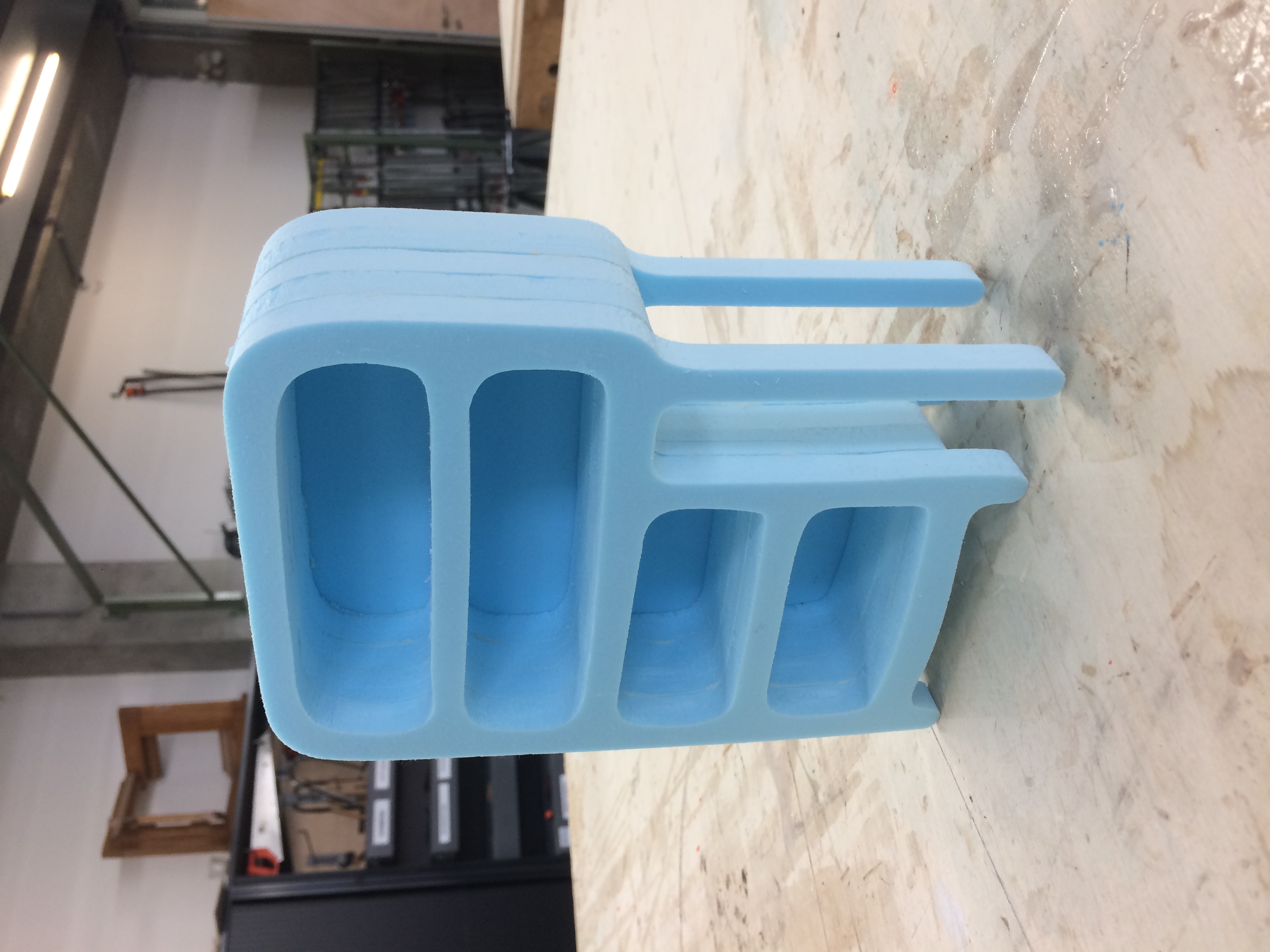 Ik vertaal mijn tekeningen van 2D naar 3D, dit doe ik door mijn illustraties uit plaatmateriaal te frezen en deze te stapelen tot de juiste dikte. Om trouw te blijven aan mijn tekeningen werk ik de gefreesde lagen nog eens af tot het gewenste resultaat. Tot slot wordt het materiaal voorzien van een coating om het product stevig te maken voor gebruik.