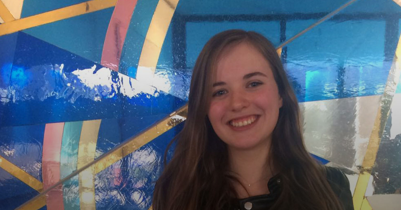 “Het eerste jaar krijg je vooral een brede basis en ligt de nadruk op presenteren en samenwerken. Zo vorm je elk blok een bedrijfje met medestudenten en werk je aan ‘echte’ praktijkopdrachten, soms moet er zelfs geconcurreerd worden tegen andere ‘bedrijfjes’. Wat ik aan theorie leer, breng ik op deze manier direct weer in de praktijk. Dat maakt het heel tastbaar allemaal.”