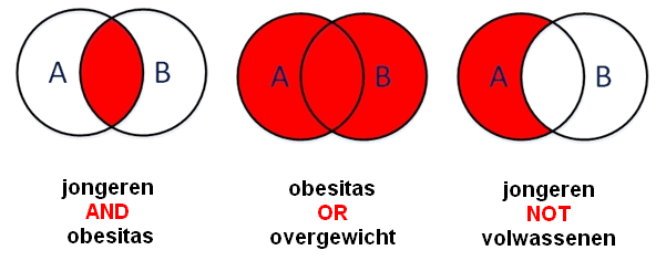 Het is slim om gebruik te maken van de zogenaamde Booleaanse operatoren AND, OR en NOT. Hiermee kun je zoektermen combineren, op meerdere termen tegelijk zoeken of juist termen uitsluiten.