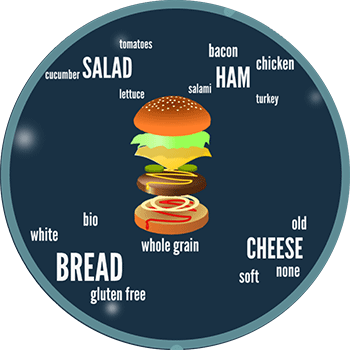 Als je op de Booleaanse manier een broodje zou willen bestellen, kun je dat zo doen: