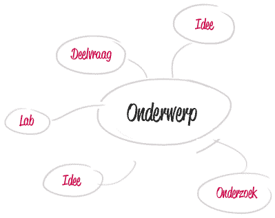 Bedenk wat je allemaal moet weten om de hoofdvraag te beantwoorden. Zet je onderwerp in het midden van een leeg A4-tje en schrijf daaromheen allemaal woorden die je te binnenschieten als je aan het onderwerp denkt.