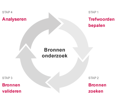 1. Hoofdvraag maken | 2. Voorbereiden | 3. Onderzoeken | 4. Uitwerken | 5. Presenteren